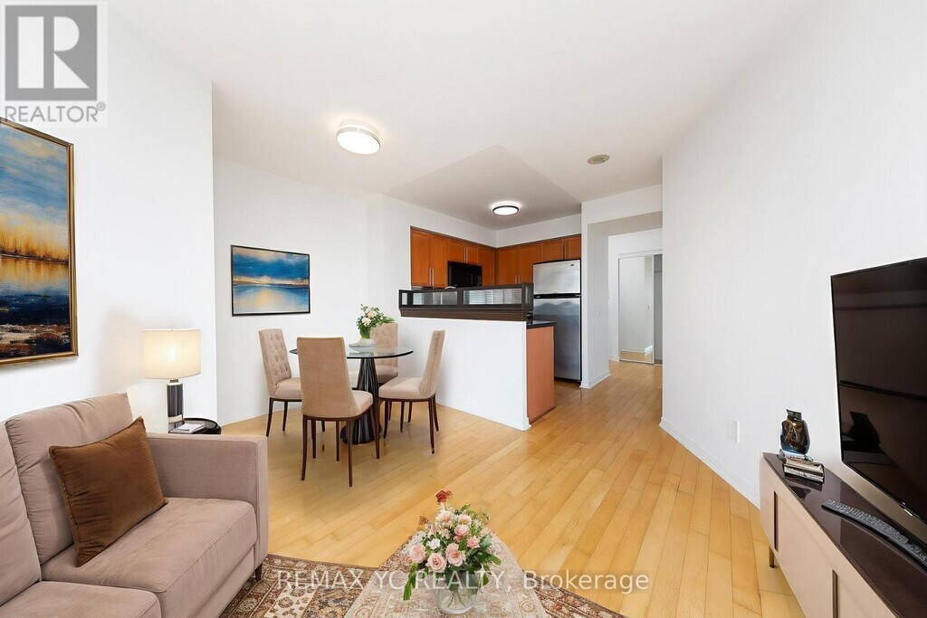 Bright and efficiently laid out 2 bed 1-bath condo with unobstructed South West views and incredible natural light throughout the day. Enjoy the clear South West view from any part of the unit. This unit features all hardwood floors (no carpet!),a modern kitchen with stainless steel appliances,and includes parking and locker. Located just steps to two subway lines,multiple grocery stores,banks,retail,trendy restaurants,cafes,and beautiful parks - everything you need is right at your doorstep. Quick access to Hwy 401 makes commuting a breeze. Building offers all the amenities you need including gym,24Hr concierge,guest suites,underground visitor parking,party/meeting room,and more. (id:52069) ID#: 1914350