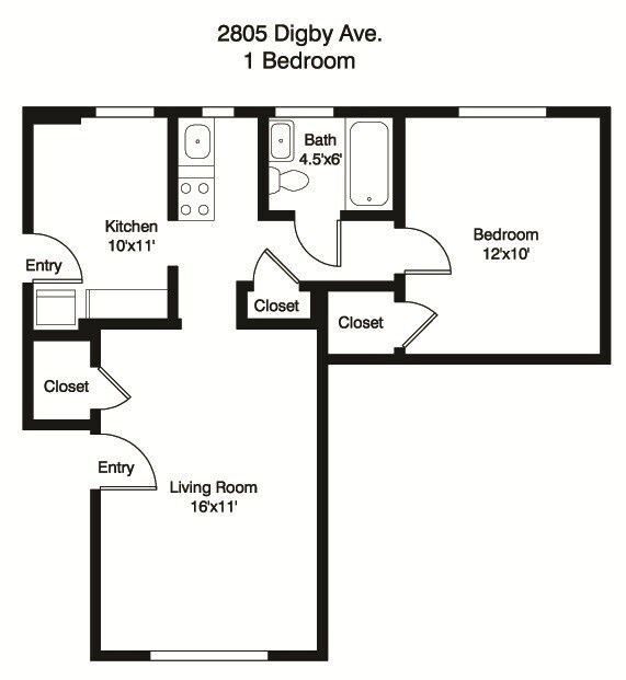 Studio to 2 Bedroom Apartments at 2805 Digby Ave currently range from $995 to $1,395
