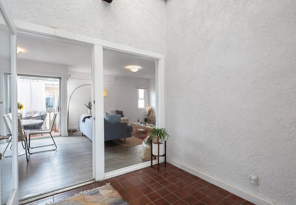 IMMEDIATELY AVAILABLE. JUST REDUCED! Great deal for wonderful apartment. $3,650 per month. Rent Controlled. No increase until September 1,. 2024. $600 per month below Zestimate. Extraordinary large bright 1 bd-1ba in Frank Gehry designed building. Upper unit with secure private atrium entrance in 6-unit building. 1-car Carport Parking. This fabulous unit with operating fireplace and all electric appliances. Unit was recently renovated with new laminate floors, new kitchen and bathroom cabinets, new sinks, new counter tops, new stainless steel appliances, range, dishwasher garbage disposal and refrigerator. Bath tub and separate shower. Private outdoor balcony. Large walk in pantry/closet; large bedroom closet with mirrors. Bike storage space. Access to coin operated washer and dryer. Lots of windows. Internet/Cable TV and electric are tenant expense. Pets considered for additional fee. Owner pays Water, Sewer and Trash. Tenant pays Electric and Internet. Rent fixed through August 31, 2024. Pets will be allowed for an additional charge.