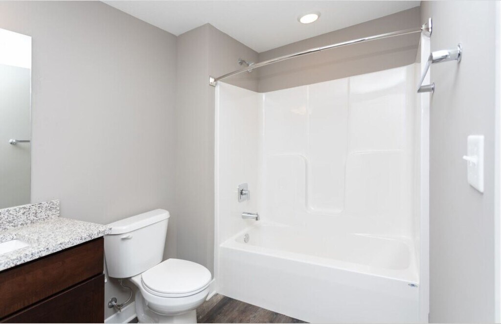 Coming home never felt so good. The Vesey 5 is the largest one-bedroom apartment Centlivre has to offer! Walk inside and be welcomed by a well-appointed kitchen with tile backsplash and a large extended pantry alongside the stainless-steel refrigerator. As the floorplan opens into the living space, you will be happy to see extra shelving for a coat closet. This one-bedroom apartment entails a large walk-in closet connected to the bathroom, with a full-sized stacked wash and dryer. Give Centlivre a call today for more information. This unit is in accordance with ADA compliance