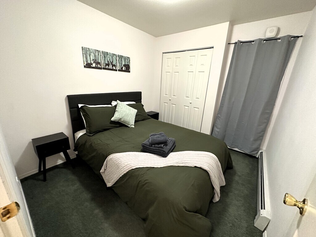 Moose + Moss – Modern Anchorage Retreat Discover Moose + Moss, a thoughtfully designed 2-bedroom, 1-bath apartment offering comfort, style, and convenience. Perfect for couples, small groups, or business travelers, this third-floor unit features a moody, earthy design and modern amenities in a quiet location just 15 minutes from ANC Airport and close to downtown Anchorage. Apartment Features: -Two private bedrooms, each with a queen bed -Full bathroom with towels, shampoo, conditioner, and body wash -Fully equipped kitchen with cookware, utensils, dishes, and coffee maker -Smart TV and high-speed Wi-Fi for streaming or work -In-unit washer/dryer with detergent included -Dedicated parking space -Third-floor unit (stairs only – no elevator) Location Perks: -15 minutes to ANC Airport -Close to shops, restaurants, and scenic trails -Easy access to all your Alaskan adventures Enjoy a clean, stylish, and well-equipped home base during your Anchorage stay.