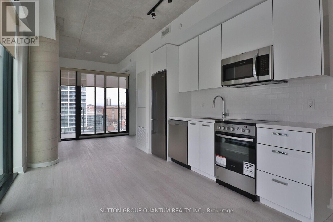 Now available for lease at Bauhaus,this contemporary residence showcases spectacular modern architecture and thoughtfully curated interior design in a prime downtown location.The unit features 9' ceilings,pre-finished engineered floors,and loft-style exposed concrete details that create a refined urban aesthetic. The open-concept layout is complemented by a European-styled modern kitchen with sleek cabinetry,double-thick stone countertops,an electric cooktop,and built-in oven-designed for both function and style.The spa-inspired bathroom offers double-thick stone vanity counters and quality modern finishes,delivering a polished and comfortable retreat. Large windows enhance the natural light,while deep balconies provide ideal outdoor space for relaxation and enjoyment.Residents benefit from high-design hallways,elevator lobbies,and an impressive entrance lobby,along with exceptionally designed bespoke building facilities that reflect the building's distinctive architectural vision.Ideally situated at 284 King St E,this location offers convenient access to neighborhood amenities,dining,shopping,and public transit. (id:63800) ID#: 1993695