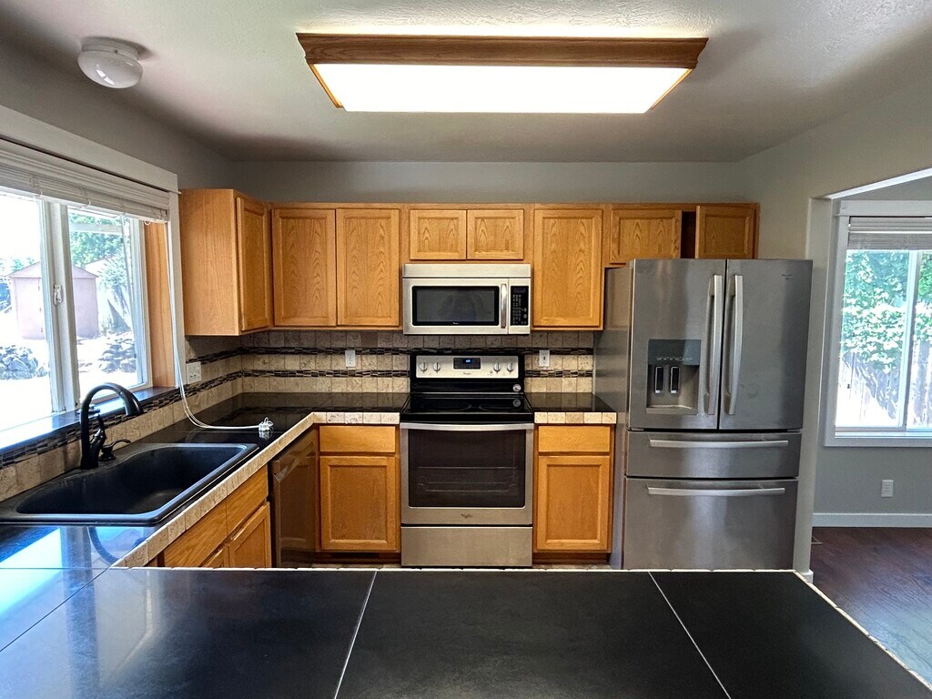 Wonderful one level home in Santa Clara! Open great floor plan with lots of natural light and vaulted ceilings. Nicely updated with granite tile kitchen counters, hardwood floor throughout primary bedroom and living spaces. Ideal location within quiet cul-de-sac. Private backyard.