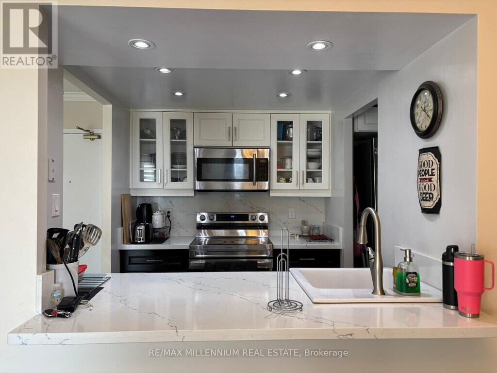 Come see this beautifully upgraded,sun-filled suite offering over 900 sq. ft. of open-concept living in the heart of Mississauga! Featuring 2 spacious bedrooms,2 full bathrooms,a bright solarium,and large windows with unobstructed views of Kariya Park,Celebration Square,andSquare One Mall.This thoughtfully renovated home features modern laminate flooring,custom baseboards,crown moulding,and fresh paint. The elegant galley-style kitchen showcases upgraded cabinets,quartz countertops,a farmhouse sink,and stainless-steel appliances. Both bathrooms have been tastefully redone with quartz vanities,new fixtures,and lighting.Enjoy the perfect blend of comfort and style in a well-maintained building,just steps to transit,shopping,dining,and all downtown Mississauga amenities.Very Clean,Well Maintained,Rare Find. Must See To Appreciate. (id:52069) ID#: 2156061