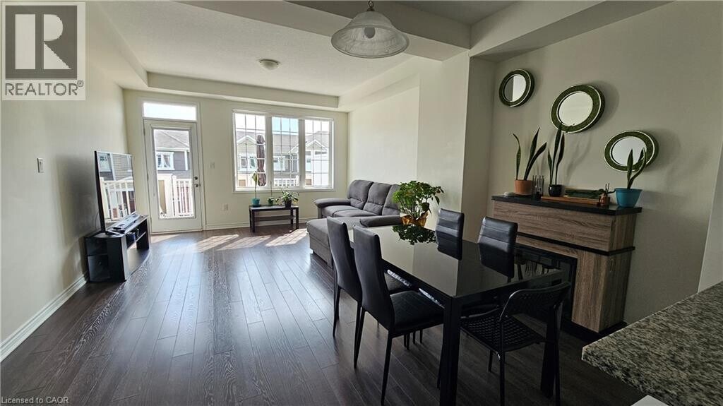 Welcome to this stunning and modern townhome,perfectly situated with easy access to Highway 401,making your daily commute a breeze! Step inside and be greeted by an open-concept main floor featuring soaring 9 ft ceilings,a bright and airy layout,and a gorgeous kitchen complete with stainless steel appliances,granite countertops,and plenty of storage. The kitchen flows seamlessly into the Great Room,where large windows fill the space with natural light and a walkout leads to a huge deck perfect for entertaining,relaxing,or enjoying morning coffee. This home is completely carpet-free,boasting stylish laminate flooring throughout for a modern,low-maintenance lifestyle. Upstairs,you’ll find three spacious and sun-filled bedrooms,including a primary suite with its own private ensuite bathroom featuring a glass shower,and a generous walk-in closet. The additional bedrooms are perfect for family,guests,or even a home office. (id:52069) ID#: 1878382