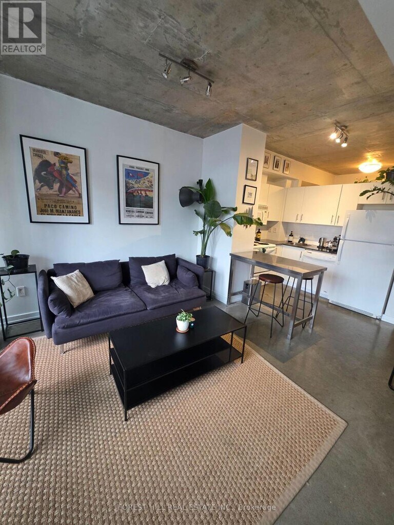 Welcome to Radio City Living. This exceptional luxury condo offers full amenities and an unbeatable location just steps to the TTC,shopping,restaurants,and pubs - yet is quietly tucked away in a serene,park-like setting. The suite features polished concrete floors and ceilings,a bright open-concept living area,and a private balcony overlooking a peaceful garden. Meticulously maintained with true pride of ownership,this immaculate residence offers both style and comfort. A must-see opportunity not to be missed. (id:52069) ID#: 1409527