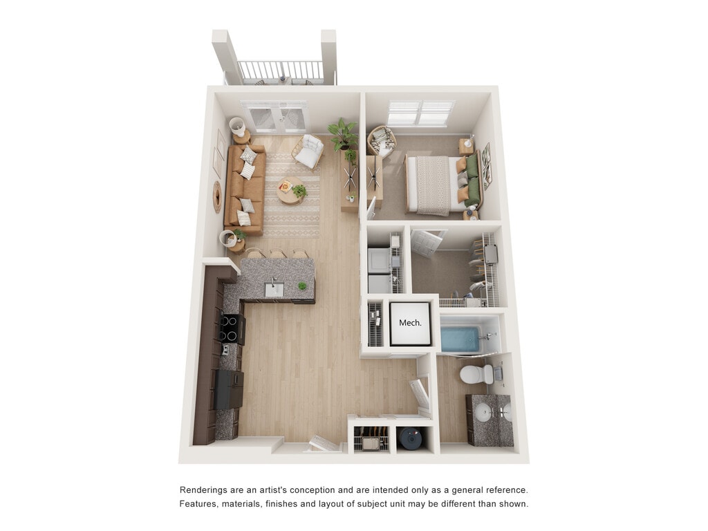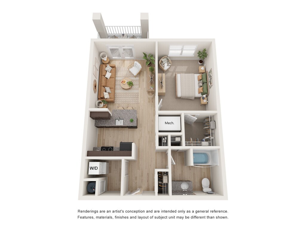 1 Bed, 1 Bath, 707 sq ftModel Gallery