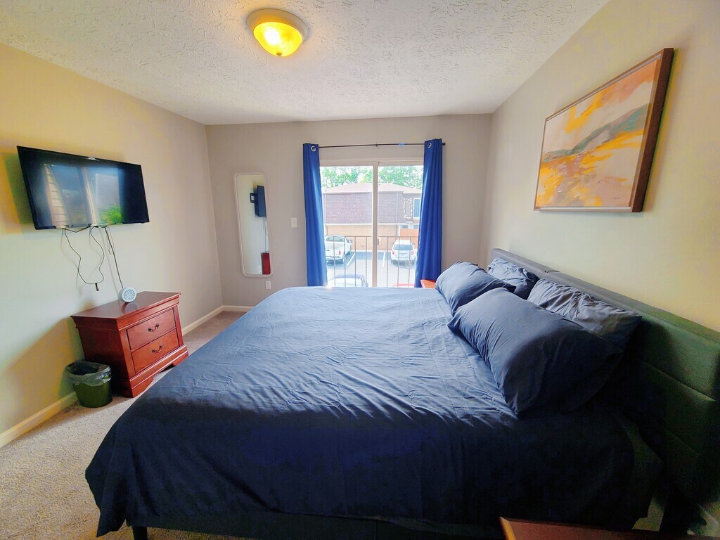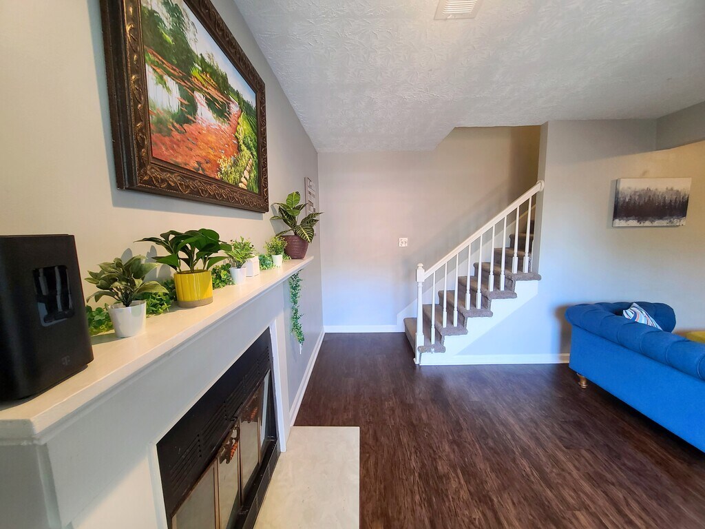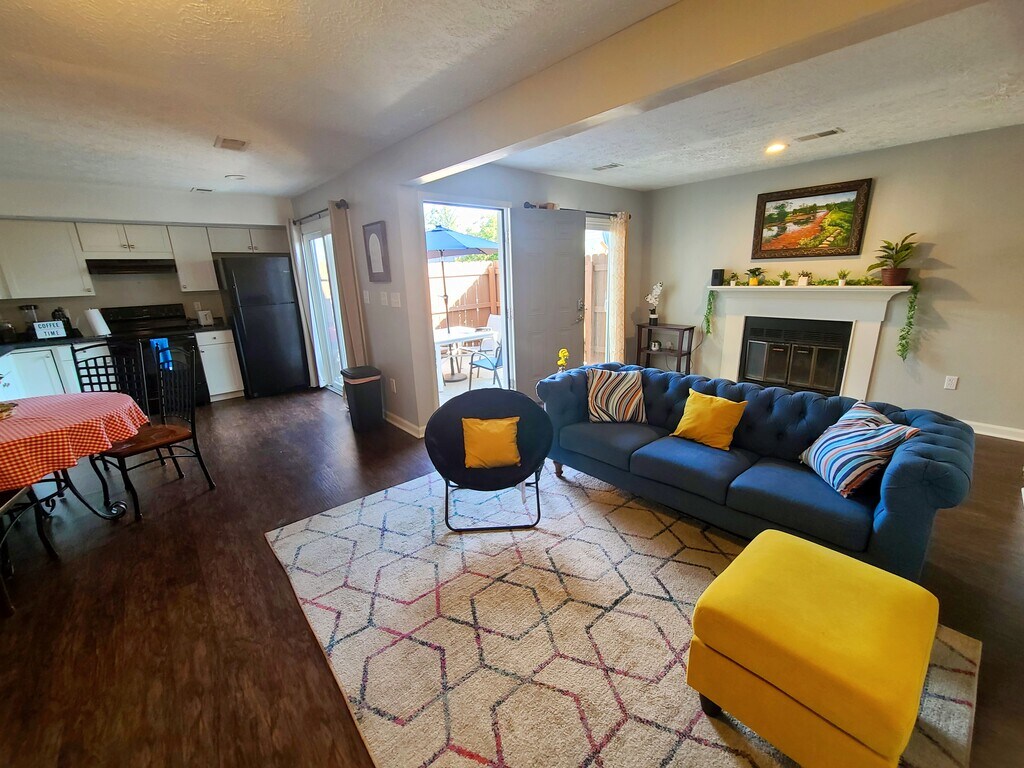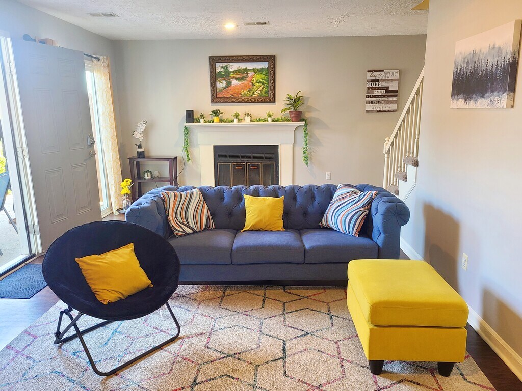 Welcome to your condo townhouse stay in a quiet neighborhood in Lexington: - Private Courtyard - Balcony - Stylish Living Room Short Drive to: - Downtown - Hamburg Shopping Outlets - Hospitals - I-75 access Bedrooms: 2 spacious bedrooms with a king bed and a comfortable queen bed, plush linens, and ample closet space. Perfect for a restful night's sleep after a day's work. Bathrooms: One full bathroom upstairs and a half bath downstairs.