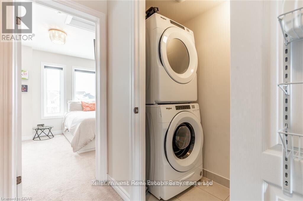 This beautiful 2 bedroom and 3 bathroom stacked townhome has a bright and welcoming layout. The kitchen features modern cabinetry with stainless steel appliances,large windows flooding in loads of natural light and overlooking an upcoming park/playground,a large pantry,gleaming backsplash tiles,and quartz countertops. The living room is roomy and bright with patio doors leading to the large back deck where you can enjoy your morning coffee. The main level also has a 2pc bathroom off of the living room. Upstairs you will find a practical laundry closet,as well as two spacious bedrooms,each with their own double closets and ensuite bathrooms. Another deck can be found off of the primary bedroom,overlooking a convenient upcoming plaza. This immaculate stunner also features a spacious garage for extra storage,and is conveniently located close to shopping,schools,parks,playgrounds,trails,and Hwy 7. (id:52069) ID#: 1970587