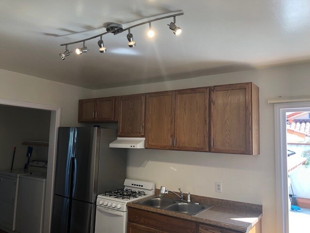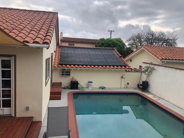 Rancho Palos Verdes Cottage Apartment Driveway Parking. Very nice one bedroom and one bath pied-a-terre. Charming guest apartment just remodeled. Freshly painted and cleaned. Cozy bedroom and full bath. Combination kitchen and living area. Appliances included are refrigerator,stove, microwave, toaster oven, washer and dryer. Use of pool. Lovely shared deck with a view that accesses hiking trails. Owner is fine with an indoor cat. Includes all utilities. Organic vegetable garden.
