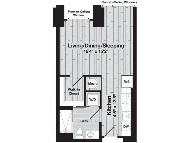 Studio, 1 Bath, 516 sq ftAvailable NowModel Gallery