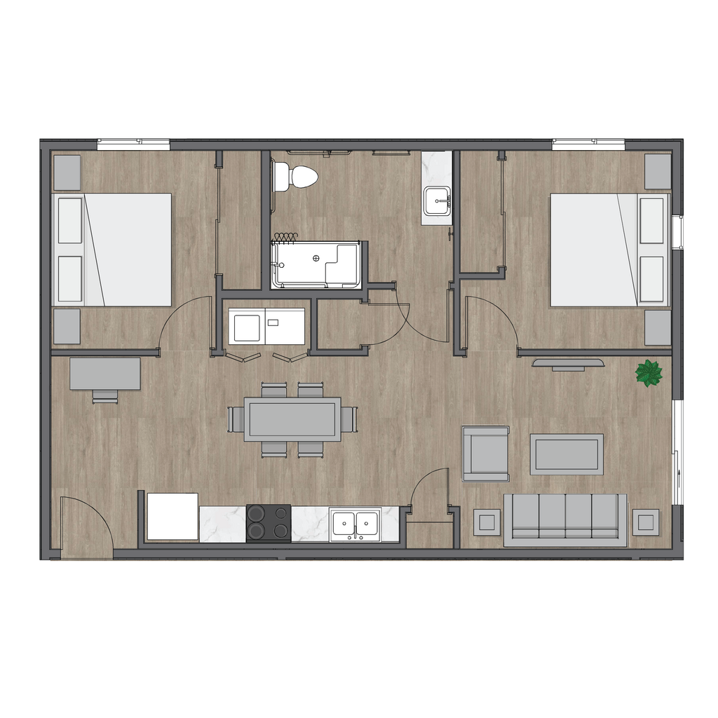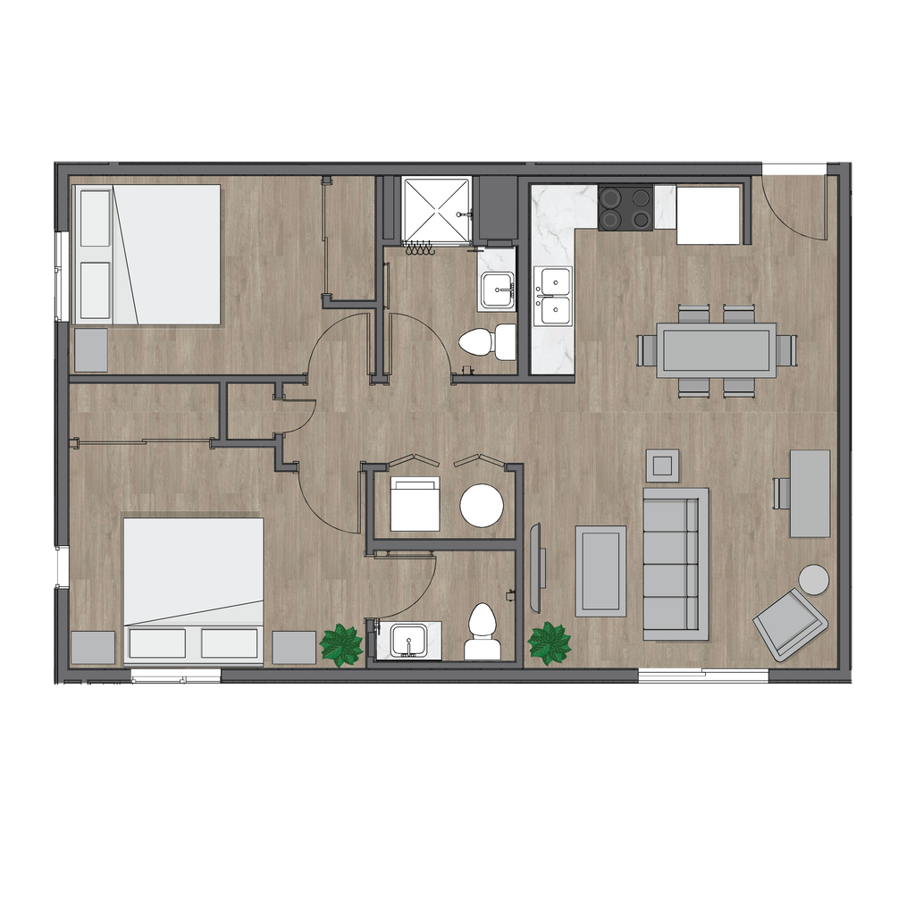 2 Beds, 2 Baths, 855-857 sq ftAvailable NowLargest 2 BedroomThis is the largest 2 Bedroom at this PropertyModel Gallery