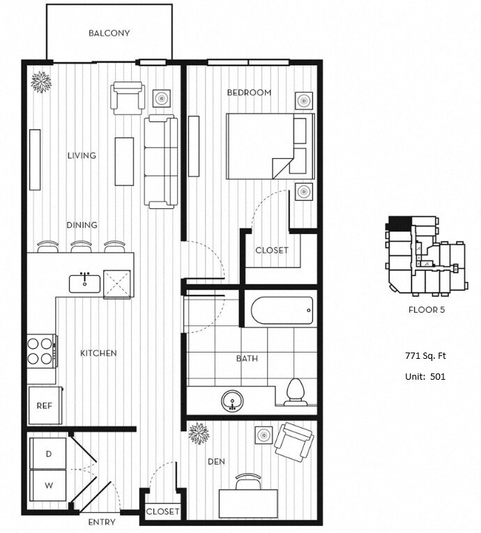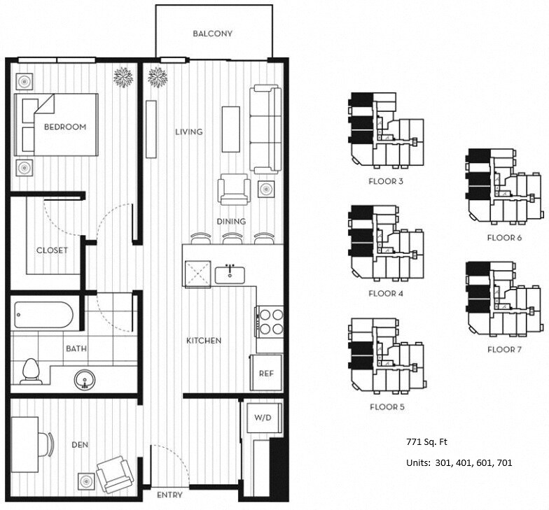Apartment Model: 1x1+D C$2,7001 Bedroom, 1 Bath, 771 sq ftAvailable December 13, 2025![]()