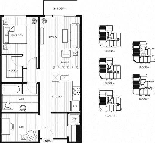 Apartment Model: 1x1+D B$2,6901 Bedroom, 1 Bath, 797 sq ftAvailable Now![]()