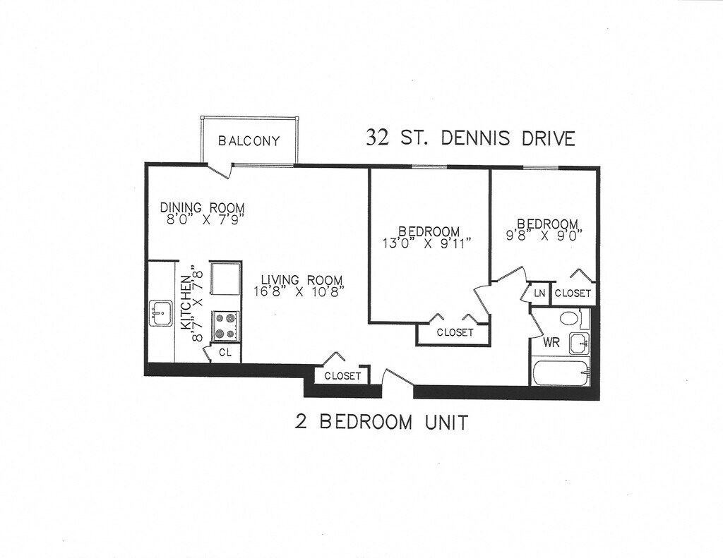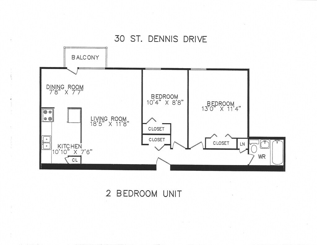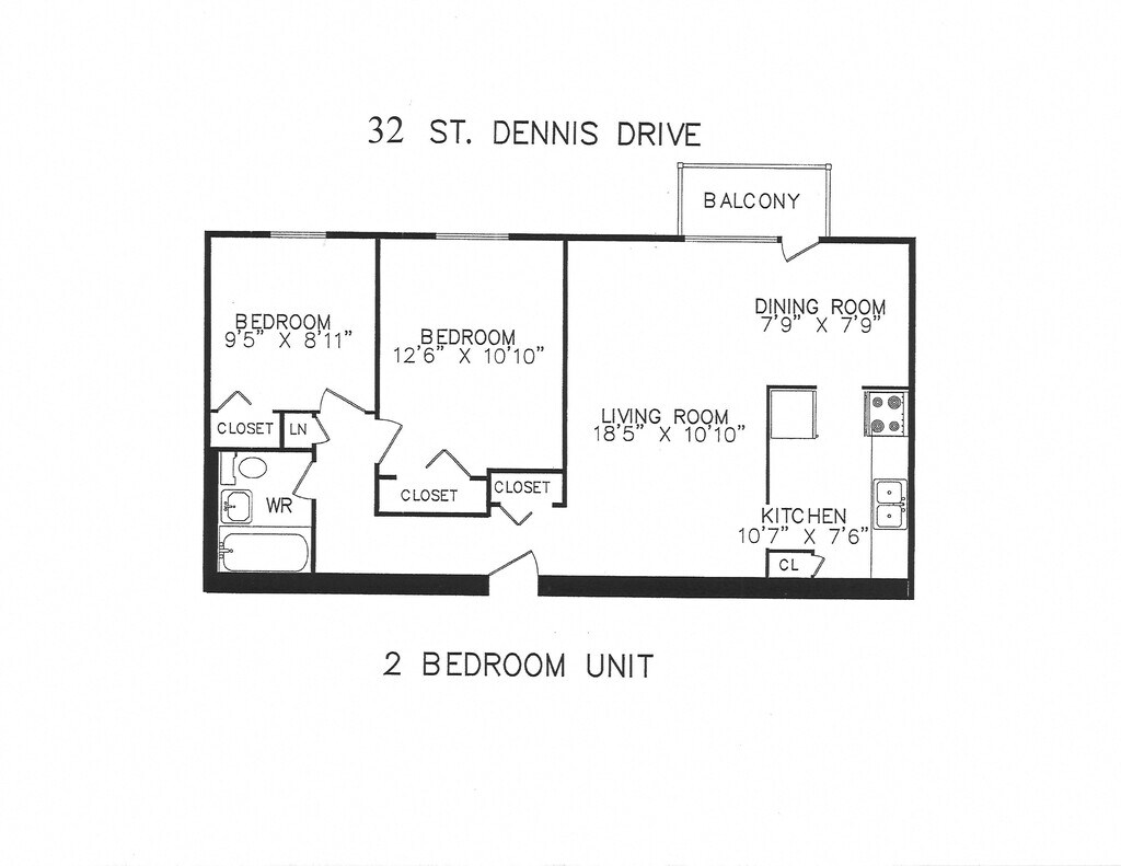 Apartment Model: 2 bedroom with one bathroom with balcony2 Bedroom, 1 Bath, 675-765 sq ftAvailable Now![]()