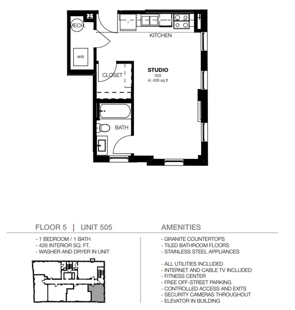 Apartment Unit: Apt #505Apartment Model: 400s - StudioStudio, 1 Bath, 426 sq ftAvailable December 10, 2025![]()
