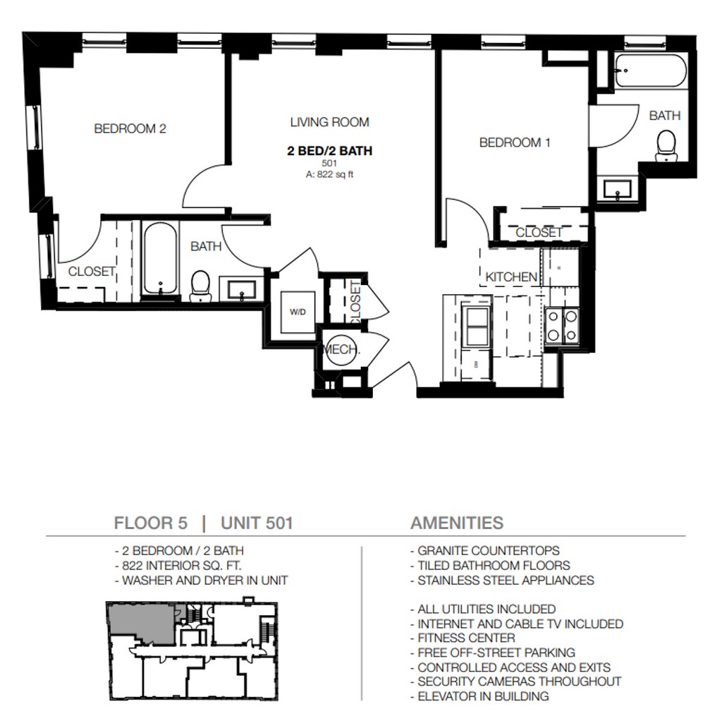 Apartment Unit: Apt #501Apartment Model: 800s - Two Bedroom2 Bedroom, 2 Bath, 822 sq ftAvailable Now![]()