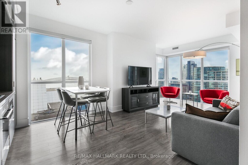 Executive **Fully Furnished & Equipped Suite**,High Floor South West Corner Unit With A Quintessential Toronto View Of CN Tower,Roger's Centre & Downtown West. Very Central Location To Convention Centre,Financial & Entertainment Districts. 24 Hour Concierge,Well Equipped Gym,Outdoor Pool With Cabanas. Split Bedroom Layout,Good Sized Work From Home Den,Large Open Concept Kitchen,Dining,Living Space. Walk Everywhere From This Location ~ Restaurants,Bars,Ripley's Aquarium,Roger's Centre,Roy Thompson Hall,King Street Theatres,Scotiabank Arena,Eaton's Centre,Queen West Shopping,Harbourfront,Round House Park,David Pecaut Square Are All Conveniently Located To This Centre Ice Location. (id:52069) ID#: 1472550