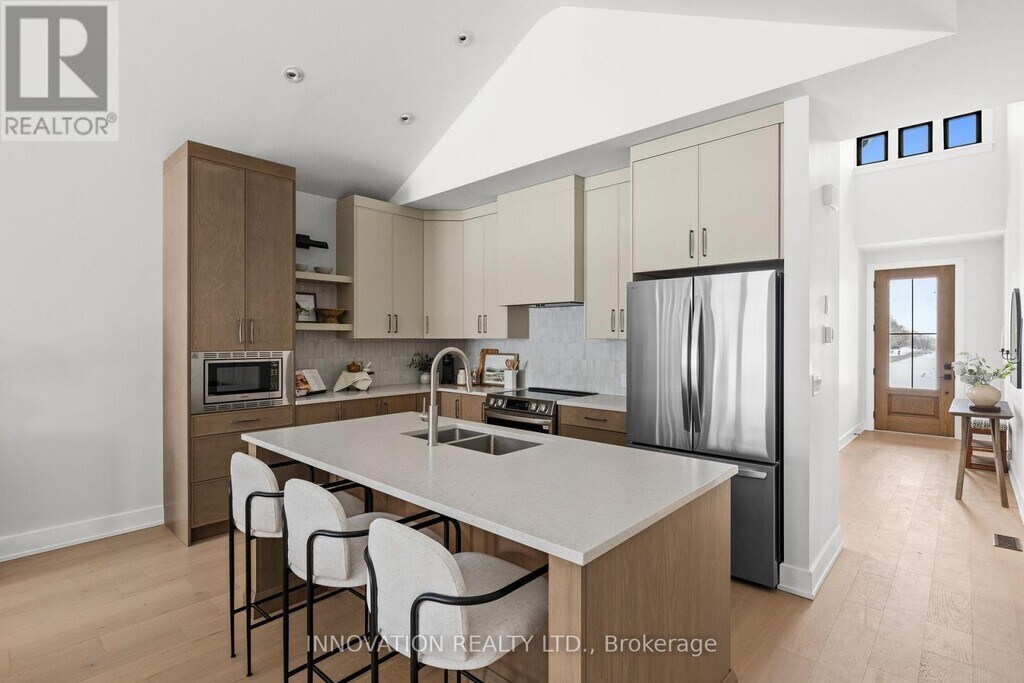 Welcome to Huntley Hollow-an exclusive,executive enclave of modern bungalow townhomes,rarely offered for lease in the charming village of Carp. This boutique,village-style community blends refined living with the warmth and character of small-town life,all just minutes from major amenities. Experience a lifestyle defined by walkability and connection-stroll to the scenic Carp River,explore the beloved local farmers' market,or enjoy the curated selection of nearby boutique shops and cafés. Huntley Hollow offers an exceptional collection of on-site amenities,thoughtfully designed for everyday luxury,including a private fitness centre,dog park,landscaped communal gardens,gazebo,and pickleball courts-all just steps from your door. This beautifully appointed bungalow townhome showcases sophisticated design and comfort throughout. The main level features soaring 9-foot ceilings,an attached garage,and a screened-in porch-perfect for seamless indoor-outdoor living. The open-concept layout is enhanced by elegant finishes,including quartz countertops throughout,a ceramic tile backsplash,stainless steel appliances,and a stunning fireplace that anchors the living space.The spacious primary suite is a true retreat,complete with a spa-inspired ensuite featuring double vanities,an oversized glass shower with built-in shelving,and a serene,natural palette. Additional features include large finished lower level with a huge rec room,bedroom and full bath,a programmable thermostat,smoke and carbon monoxide detectors and a high-efficiency gas-fired tankless water heater. A beautifully crafted stone walkway welcomes you home,adding to the property's exceptional curb appeal. Discover the ease of a lock-and-leave lifestyle in a community where everything is within reach-park your car and simply enjoy. Rent includes: water,snow removal,and lawn maintenance. Tenant pays: Gas and Hydro. (id:52069) ID#: 1923067