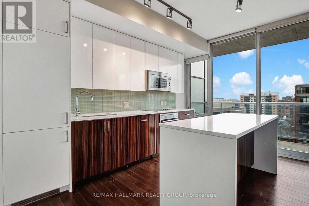 Welcome to SoHo Lisgar,located right in the centre of downtown Ottawa. This modern one-bedroom apartment has a bright and open feel with its floor-to-ceiling windows that fill the space with sunlight. The layout makes a really great use of space,with a sleek kitchen that has quartz countertops,plenty of cabinet space,and built-in stainless steel appliances. The bedroom has plenty of storage and in-unit laundry for convenience. Start your day off with coffee in your contemporary kitchen,or unwind at night on your private balcony overlooking the city.The building has a ton of high-end amenities,including a gym,outdoor pool,hot tub,and even a BBQ area,which is perfect for relaxing or hosting friends during the summer. Further,enjoy a private lounge and a theatre room,which make it easy to enjoy downtime without leaving the building.Living here means being steps away from everything. Bank Street's shops,restaurants,cafes,and grocery stores are all close by,and public transit makes it easy to get around. SoHo Lisgar combines the energy of downtown life with the comfort of a stylish home. Whether you're working downtown,a student,or just someone who wants to be in the heart of Ottawa,this condo really has it all. (id:52069) ID#: 2095912