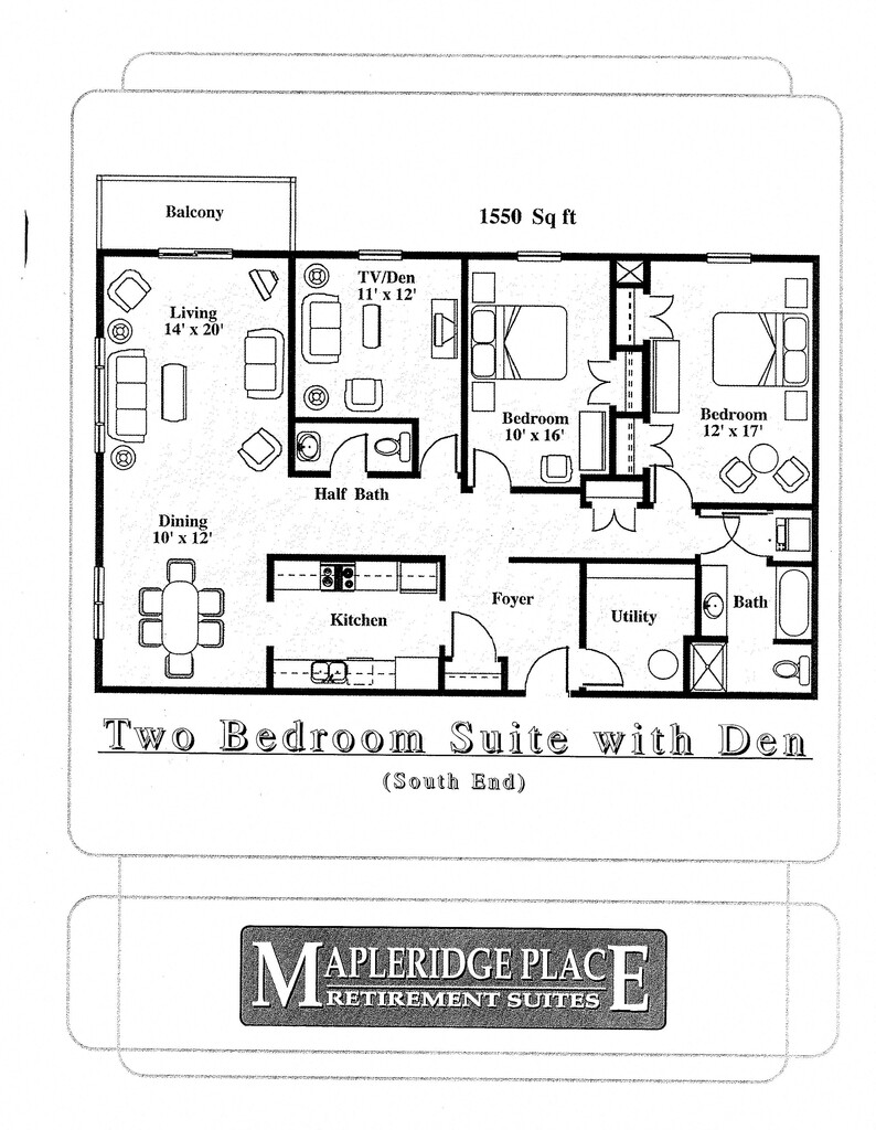 Apartment Model: Two Bedroom + Den2 Bedroom, 1 Bath, 1650 sq ftUnavailable![]()