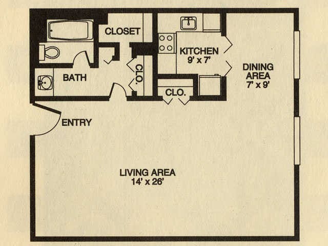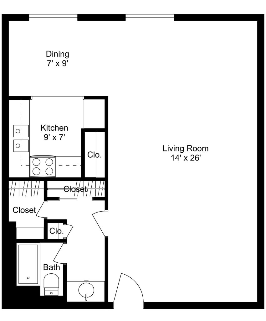 Studio | 1 Bath - Floorplan 6 1 Bedroom