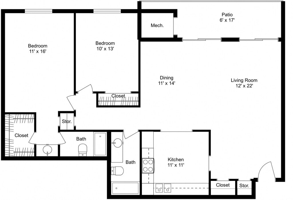 2 Beds, 2 Baths, 1160 sq ftAvailable NowModel Gallery