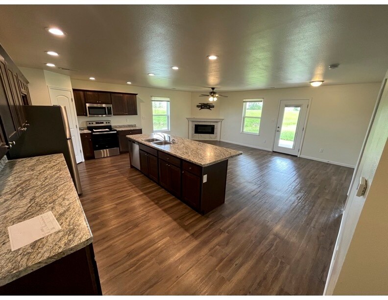 Nice house in a newer development on the south edge of Cedar Falls only a few minutes from shopping and the University. Plenty of off street parking with garage and three wide driveway. There is a large backyard and covered patio for entertainment. Four bedrooms and two bathrooms. Master Bath can be accessed off of common area for a potential of two people per bathroom if you are a group of students. Large open Kitchen/Living/Dining is capped off with an electric fireplace to add character.