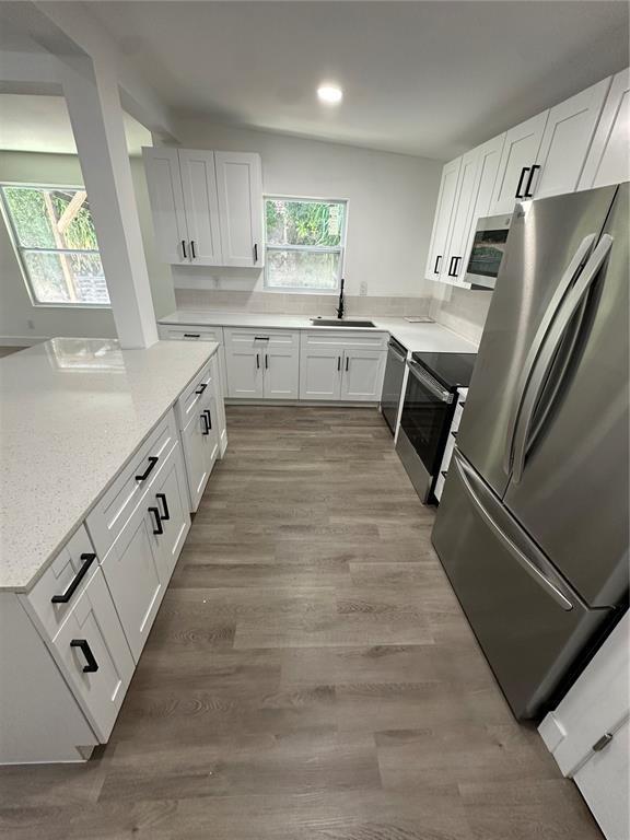 Remodeled 3-bedroom, 2-bath residence offers modern living at its finest featuring brand-new appliances, central A/C, washer and dryer, and soaring high ceilings, this home blends style, comfort, and functionality. The open floor plan creates a bright and airy atmosphere, perfect for both everyday living and entertaining.