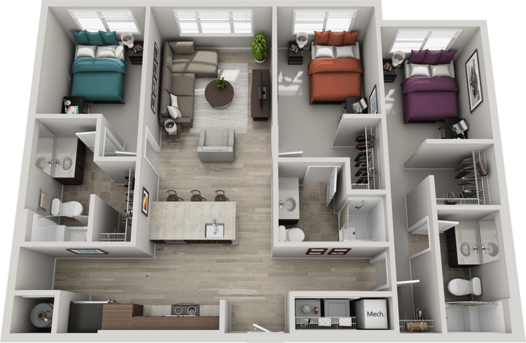 4 Beds, 4 Baths, 387 sq ftAvailable NowLargest 4 BedroomThis is the largest 4 Bedroom at this PropertyModel Gallery