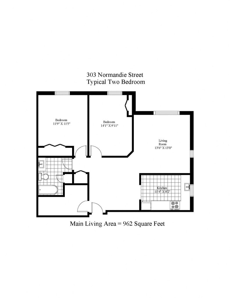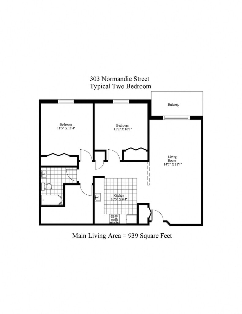 Two Bedroom - Floorplan 3 Apartment Unit: 3016Apartment Model: Two Bedroom2 Bedroom, 1 Bath, 939 sq ftAvailable Now3 Bedrooms