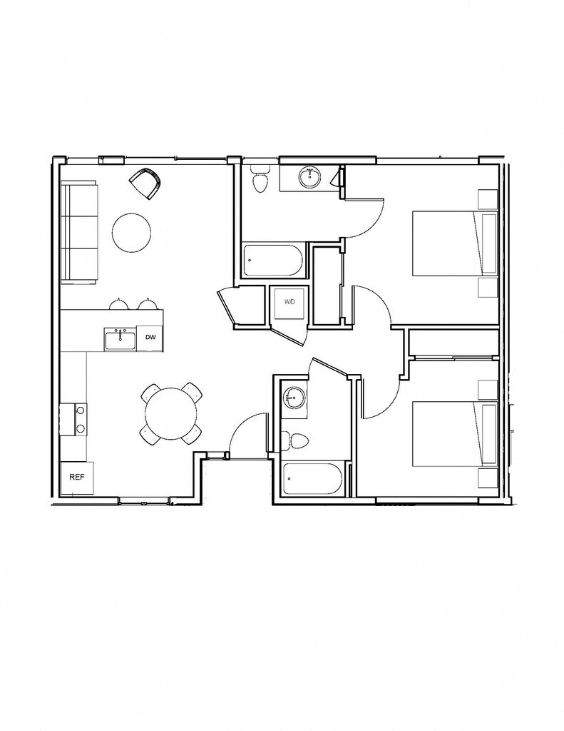 2 bed 2 bath - Floorplan 4 Apartment Unit: 211Apartment Model: 2 bed 2 bath$2,5952 Bedroom, 2 Bath, 845 sq ftAvailable November 3, 2025Apartment Unit: 212Apartment Model: 2 bed 2 bath$2,5952 Bedroom, 2 Bath, 845 sq ftAvailable November 7, 2025Work/Live