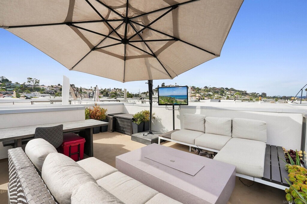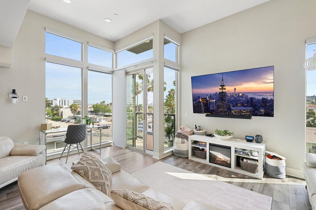 Welcome to this beautifully crafted fully furnished townhome that offers the perfect blend of sophistication and modern comfort. This corner unit boasts a contemporary showroom-style design, filled with abundant natural light and breathtaking panoramic views of the San Diego Bay, Downtown Skyline, and the picturesque Wooded Hills of Point Loma. Ideal for someone seeking a turn-key opportunity, this property is equipped with top-tier features including Jenn-air stainless steel appliances, quartz countertops, luxury vinyl plank flooring, and an oversized farm sink. Enjoy outdoor living on the rooftop deck complete with a built-in BBQ and fridge, or relax indoors with amenities such as a Juliet balcony, expansive walk-in shower, and contemporary carpet. The home also includes Kohler plumbing fixtures, a tankless water heater, high-pressure laminate designer cabinetry, and central heat & AC. For convenience, two underground side-by-side parking spots come with an added EV charger and storage space. Located close to Shelter Island, the beach/bay, and the village, this fully furnished townhome offers easy access to all the vibrant attractions San Diego has to offer, making it move-in ready for its next fortunate occupants.