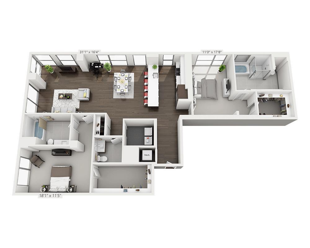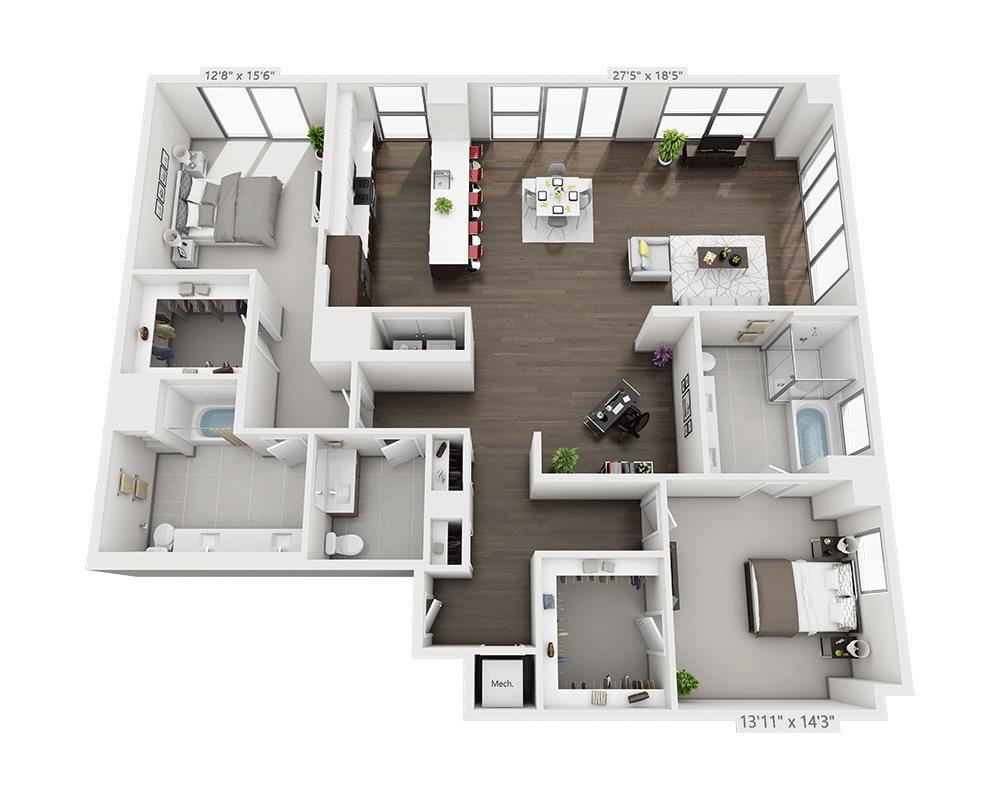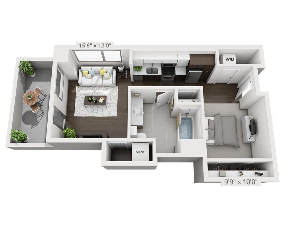 Studio, 1 Bath, 701 sq ftLargest StudioThis is the largest Studio at this PropertyModel Gallery