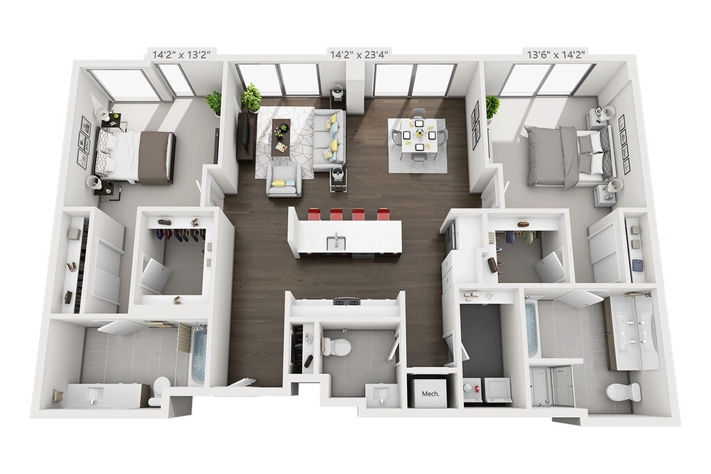 - Floor-to-ceiling windows