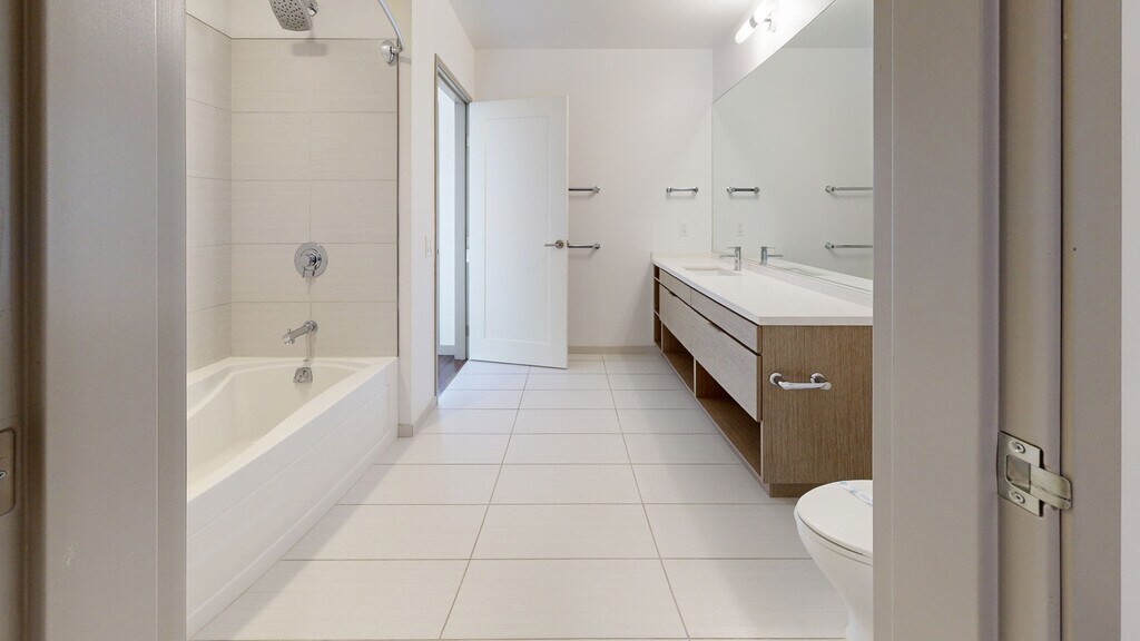 - Porcelain tile in the bathrooms