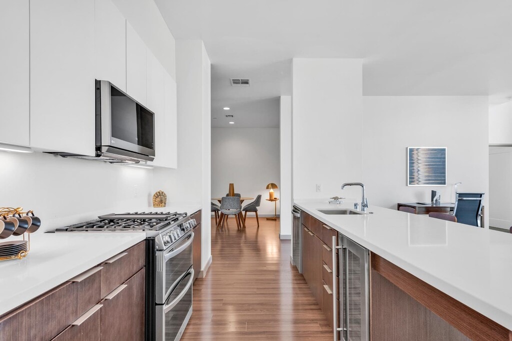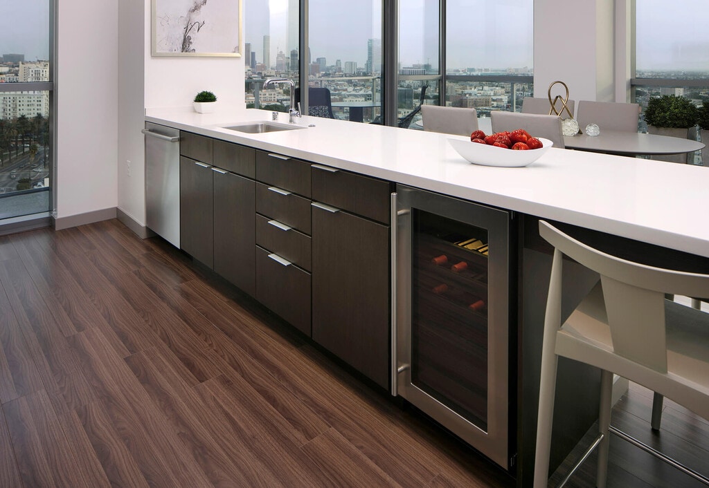 Discerning individuals with an appreciation for beautiful aesthetics, designer accessories, and fine appointments are invited to join the newest residential social club in town. 3033 Wilshire is an exclusive residential hotspot with modern elegance and contemporary sophistication that offers upscale apartments with designer interiors, superlative amenities, concierge service, and more. These Koreatown apartments feature wood flooring, stainless steel appliances, walk-in closets, and panoramic views. Come see these luxury Los Angeles apartments in Koreatown for yourself by scheduling an appointment today. We are currently offering self-guided tours and virtual appointments.