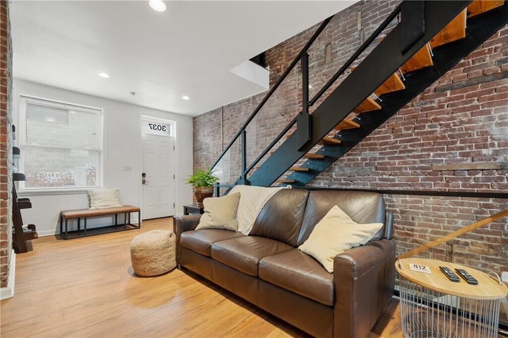 Experience the perfect blend of modern luxury and urban charm. Centrally located between the dynamic Strip District and hip Lower Lawrenceville, this residence puts you in the heart of Pittsburgh's cultural and culinary scene. The Primary Suite features a spacious bath and walk in closet. The lower level adds versatility to the home, featuring a finished basement that can serve as a den or a second bedroom, complete with a full bath, laundry room, and an additional storage closet. The heart of the home is a state-of-the-art kitchen featuring quartz countertops and stainless steel appliances. Revel in the unique character of exposed beams and brick that add a touch of charm to the living area. Large windows flood the space with natural light, creating an inviting atmosphere. Schedule a viewing today and envision yourself living in this meticulously renovated space where every detail has been carefully crafted to provide comfort, style, and convenience.