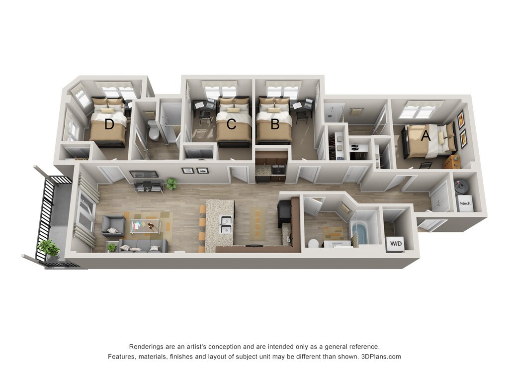 Apartment Model: 4BR/3BA4 Bedroom, 3 Bath, 1243 sq ftUnavailable![]()
