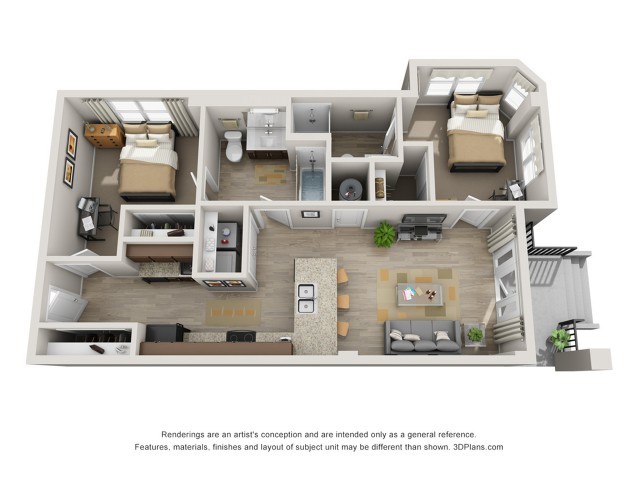 2BR/2BA - B - Floorplan 3 3 Bedrooms