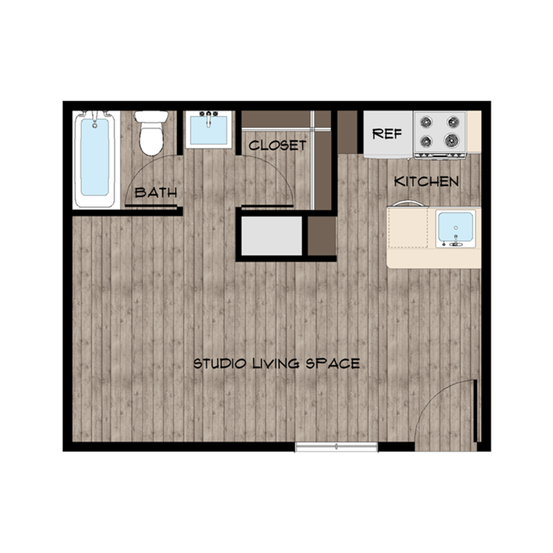 Studio, 1 Bath, 400 sq ftAvailable NowModel Gallery