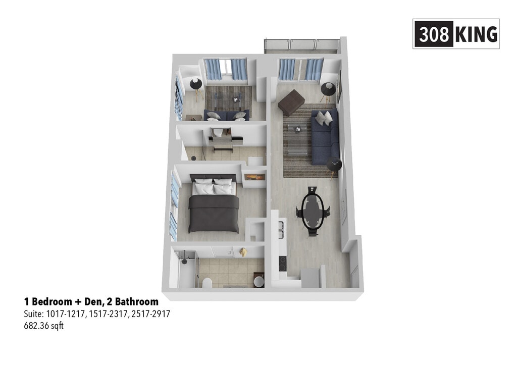 2 Bedrooms at 308 King currently start from $1,213. Call today for more info!