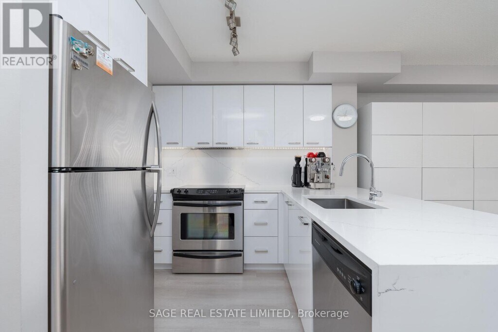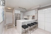 A thoughtfully renovated 1-bedroom + den condo at The Europa Lofts,a quiet,boutique low-rise building. Built in an era when thoughtful layouts and generous room sizes were the standard. A complete renovation has transformed the property into an inviting,modern space. The all-white kitchen features stainless steel appliances,quartz countertops,ample cabinet storage,and a breakfast bar. The open layout comfortably accommodates a proper dining area and living room,while two Juliette balconies overlooking College Street provide fresh air,and added charm. The den is currently configured as a walk-in wardrobe but can easily be converted into a home office or flex space. The large bedroom includes a walk-in closet and comfortably fits a king-size bed with room to spare. Parking and locker are included. Located in a highly sought after pocket,this condo is within walking distance to College Street's best restaurants,cafés,and shops,with convenient access to transit and grocery stores. (id:52069) ID#: 2022375