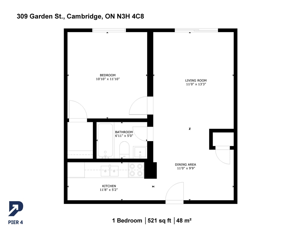 1 Bed, 1 Bath, 521 sq ftModel Gallery