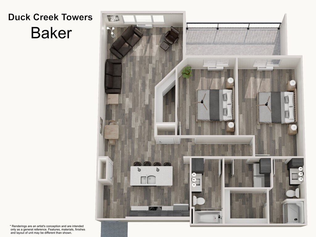 Apartment Model: BrockenFrom $1,1401 Bedroom, 2 Bath, 770-785 sq ftAvailable December 1, 2025![]()