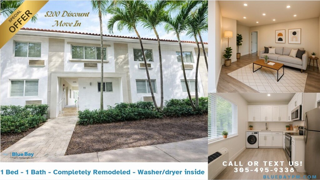 Before you begin: Please only apply if you have a credit score of 640 or higher. If not you will need a cosigner with a credit score of 640 or higher to apply with you. Contact to us! and "enter optional information", provide additional information about what you are looking for so we can find the best rental to meet your needs. Great unit in Coral Gables. This is a great building on a tree-lined street. The unit is cozy and inviting. The kitchen, in medium cherry cabinets and granite countertops, includes all the appliances and is fully equipped. The appliances are stainless steel and the backsplash is in granite. The kitchen features lots of cabinets and counter space. Tile floors, big baseboards molding add a nice touch to this unit. The bathroom is clean and updated. The unit has tons of storage with closets in different areas. 2 bedrooms. Lots of windows and natural light. Nice size apartment! The building has laundry facilities. Great neighbors. Dogs and cats are welcome as part of the family! This is simply a place to be called HOME. Coral Gables downtown center is a few blocks, this is the neighborhood for afternoon strolls, bike rides, go out adventures. beautiful Miracle Mile is so close! You also have a park, full service, and beautiful, across the street! Amazing location with a supermarket in the corner, across the street... your groceries without a car! Public transportation steps away. Connection with the Metrorail to move all around Miami. Close to Key Biscayne, Mercy Hospital, University of Miami, JACKSON MEMORIAL/FIU and MIAMI International Airport, and so much more. All this at an incredible price. Don't miss this one! Call today/Text today!! Call today/Text today!!