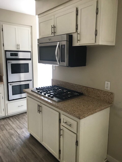 2 bedroom/2 bath available April 1. Plank flooring, kitchen island, newer bathrooms, corner unit, 2 car parking - tandem w/ storage