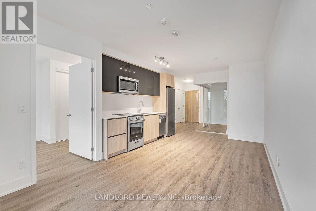 Vacant,move in ready 730 sq ft unfurnished professionally-managed 2-bedroom 2-bathroom suite with ~40 sq ft balcony in The Keeley: a new development overlooking the lake of Downsview Park and walking distance to Downsview train & subway stations (little as ~20 minutes to downtown)! Parking and locker included. Layout with 8' ceilings,open plan kitchen/living room that walks out to east-facing balcony overlooking the park and lake,east-exposure primary bedroom with double closet and 4pc en-suite bathroom,then second bedroom with built-in closet near the 2nd 3pc bathroom by the entrance. Floor plan among listing images and attached to listing. Features and finishes include: new laminate flooring throughout,stone countertops,stone backsplash,Whirlpool stainless steel appliances,Blomberg laundry machines,two-tone kitchen cabinets,tiled tub & shower stalls,and more! -- Appliances: Fridge,electric range,range microwave,dishwasher,washer,dryer. All existing window coverings. All existing light fixtures. -- Building Amenities: Refer to listing images to see all! -- Utilities: Metering of utilities by Carma. (id:63800) ID#: 1894198