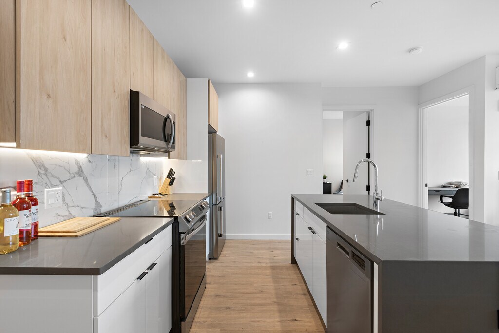 Introducing The Pine, Jersey City's newest edition to the blossoming Bergen-Lafayette neighborhood providing upscale living spaces and luxurious amenities. Each home offers bright, modern open floor plans with high-end finishes and private terraces in every home. Interior features include chefs kitchen with Samsung stainless steel appliances, LED under cabinet lighting, combo washer/dryer, large waterfall islands, spa-like bathrooms with floor to ceiling tiles, double sink vanities soaking tubs and rain shower heads. Penthouse units include steam showers. Additional features include high ceilings, built-in LG heating and cooling systems, over-sized European windows, keyless entry and garage parking with charging station for additional fee. Community features include a common rooftop sundeck with NYC views, residents lounge and library, common work space, fitness center, inviting lobby with package room, elevator access, garage parking, trash shoot and free bicycle storage. The Pine is ideally situated in a neighborhood that is an extension of Downtown and connected by The Liberty State Park Bridge. Here, you are minutes away from the Liberty State Park Light Rail and only 4 stops to the Exchange Place path train – which gets you to Manhattan in approximately 3 minutes. At The Pine, residents can expect to love where they live! Only 1 month security deposit! No amenity fee. Pet friendly.