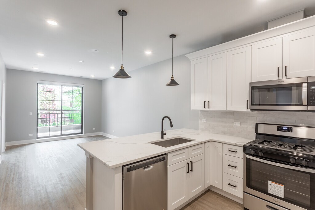 *Please note that current photos are of units from a sister building by the same developer. Updated photos are coming soon* BRAND NEW CONSTRUCTION! in Lakeview - 3 Bed / 2 Bath & 2 Bed / 2 Bath - Available June 1st! The latest in premium Chicago apartment living situated in the popular Lakeview neighborhood of Chicago. These 3 bed / 2 bath and 2 bed / 2 bath simplexes are an embodiment of modern sophistication. Open concept floor plan for improved socialbility, communication and layout flexibility. The kitchen boasts a large peninsula, stylish white cabinetry with sleek, black hardware and fixtures, white subway tile backsplash, soft close cabinets and drawers and stainless-steel energy star appliances including dishwasher and built-in microwave. Primary bedroom has an attached ensuite porcelain-tiled spa-like bathroom. All bedrooms are generous in size and include full closets with custom built-in shelves and organizers. Recessed high efficiency LED lighting, luxury engineered wide-plank flooring throughout, in-unit full W/D and balcony with composite decking. With a 97 Walk Score® and an 91 Bike Score® 3118 N Greenview is near it all! The energy efficient construction featuring closed cell foam insulation reduces utility costs and improves room temperature control. All floors and ceilings include sound dampening isolation engineering to increase privacy. Tired of trudging up stairs? Take the KONE Monospace® elevator to your floor, the latest in elevator technology. Also included is off-street secured entry with intercom system and package receiving area. We're pet friendly and all units are conveniently wired for cable, internet and phone.In addition to the rent, a Bundled Services charge of $50 applies to cover water, sewer, trash removal & recycling. $60 application fee per adult. $-0- security deposit. One-time $500 move-in fee. Pricing & availability of units & specials are subject to change without notice. Photos may be of a model unit; available apartments and finishes may vary.